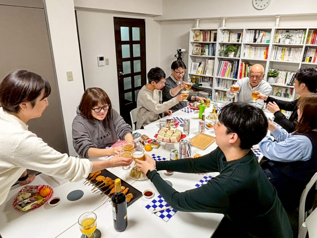 飲み物や食べ物を用意して、講義の内容や自分の会社で起きていること、時にはプライベートのことまで、みんなで楽しく歓談する時間です。