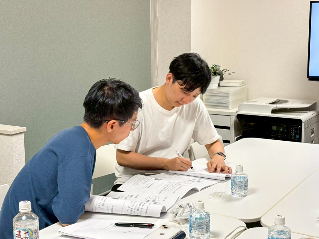 限られた時間のなかでかなりの量のインプットをするので、パソコンは使わず基本テキストに書き込んでもらいます。書く人は真っ赤になるくらい書き込んでいて、すごいですよ。