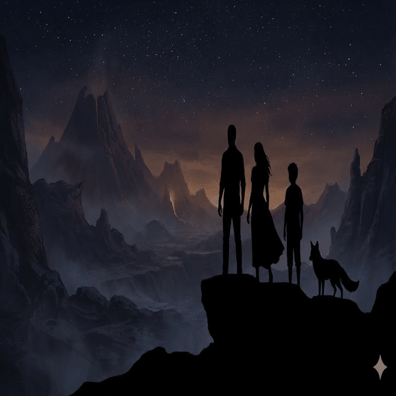 私は、心が揺らぐまま、じっと遠くを見つめている。アリスとテレスも、私の気持ちが伝わっているようだ。すぐそばでは、あのキツネがじっと私たちを見つめている。これから始まる対話の行方を見届けようとしているのだろう。
